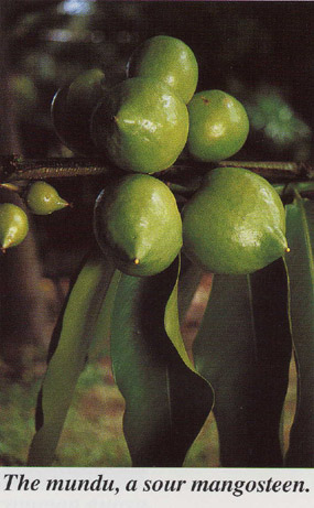 The yellow mangosteens are much easier trees to grow and bring to fruiting than the (purple) mangosteen. There are several species of yellow mangosteen, including the mundu (G. dulcis), the kochin goroka (G. xanthochymus) and the asam gelugur (G. atroviridis).