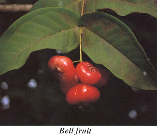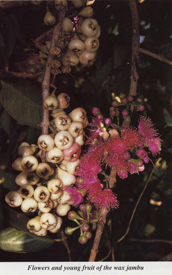 Aegle marmelos – bael *Aleurites moluccana – candle nut* *Anacardium occidentale – cashew* *Ananas comosus – pineapple* Annona cherimola – cherimoya A. diversifolia – ilama A. glabra – pond apple *A. muricata – guanabana* A. purpurea – soncoya A. reticulata – mamon *A. squamosa – sweetsop* Atemoya – African pride Antidesma bunius – bignay Artocarpus altilis – breadfruit A. elasticus – terap A. heterophyllus – jackfruit A. odoratissimus – marang A. polyphema – chempedak Averrhoa bilimbi – bilimbi A. carambola Baccaurea dulcis – ketupa B. motleyana – rambai Bactris gasipaes – pejibye Berholletia excelsa – Brazil nut *Blighia sapida – akee* Bouea macrophylla – maprang Butia capitata – jelly palm Byrsonima crassifolia – nanceCajanus cajan – pigeon peas Camellia sinensis – tea Canarium commune – canari C. mehenbethene – galip C. ovatum – pili Carica bornii x pentagona – babaco *C. papaya* – * papaya* C. pubescens – mountain papaya Carissa edulis – Egyptian carissa C. grandiflora – Natal plum Caryocar nuciferum – souari Casimiroa edulis – casimiroa Ceratonia siliqua – carob Cereus peruvianus – apple cactus Chrysophyllum icaco – icaco *C. cainito – cainito* Citrofortunella mitis – calamondin Citrus aurantifolia – West Indian lime C. aurantium – sour orange C. jambhiri – rough lemon C. latifolia – Tahiti lime C. limetta – Mediter lime C. limon – lemon *C. maxima – pummelo* C. medica – citron C. reticulata – mandarin C. X paradisi – grapefruit *Clausena lansium – wampi* Coccoloba uvifera – uvero *Cocos nucifera * – * coconut* Coffee arabica – coffee Cyphomandra betacea – tamarilloDillenia indica – dillenia Diospyros digyna – black persimmon D. discolor – mabolo Dovyalis caffra – kei apple D. hebecarpa – kitembilla Durio zibethinus – durianElaeis guineensis – African oil palm Eugenia brasiliensis – grumichama E. uniflora – Brazil cherry E. pitanga – pitanga Euterpe oleracea – euterpe palm Euphoria longan – longan E. malaiensis – mata kuchingFeronia limonia – wood apple Flacourtia indica – ramontchi F. inermis lovi – lovi F. rukam – rukam Fortunella sp – kumquatGarcinia atroiviridis – asam gelugur G. dulcis – mundu G. livingstonei – imbe G. mangostana – mangosteen G. xanthochymus – kochin goroka Hymenia courbaril – West Indian locust *Inga cinnomonea – inga* Lansium domesticum – langsat/duku *Macademia integrifolia – macadamia* Nephelium lappaceum – rambutan Opuntia ficus-indica – Indian fig Parmentiaria edulis – cuachilote Rebaudi stevia – rabaudi Saccharum officianarum – sugarcane Tamarindus indica – tamarind Ziziphus chinensis – Chinese jujube |
